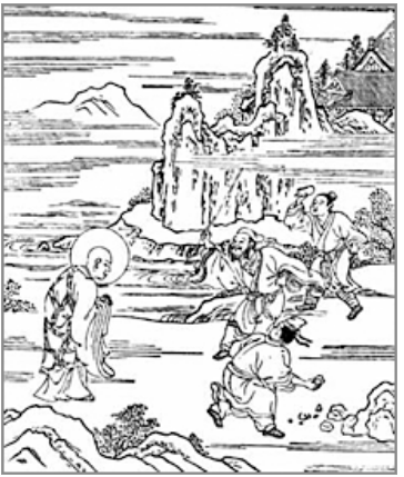 石を投げる人々に礼拝する常不軽菩薩