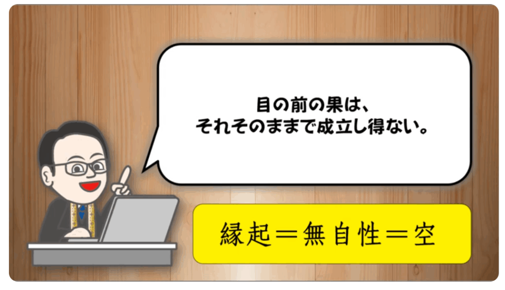 ⇒物質的存在としての本体がない→固定的に永遠に存在する本体はない→無自性=空