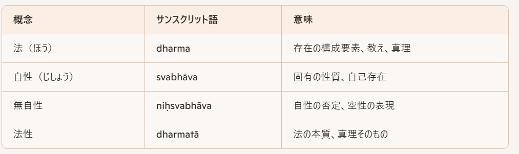 ・第一類は「法性(ほつしょう)dharmatā(ダルマター)とも訳される原語のグループで、「法たること」を意味する。