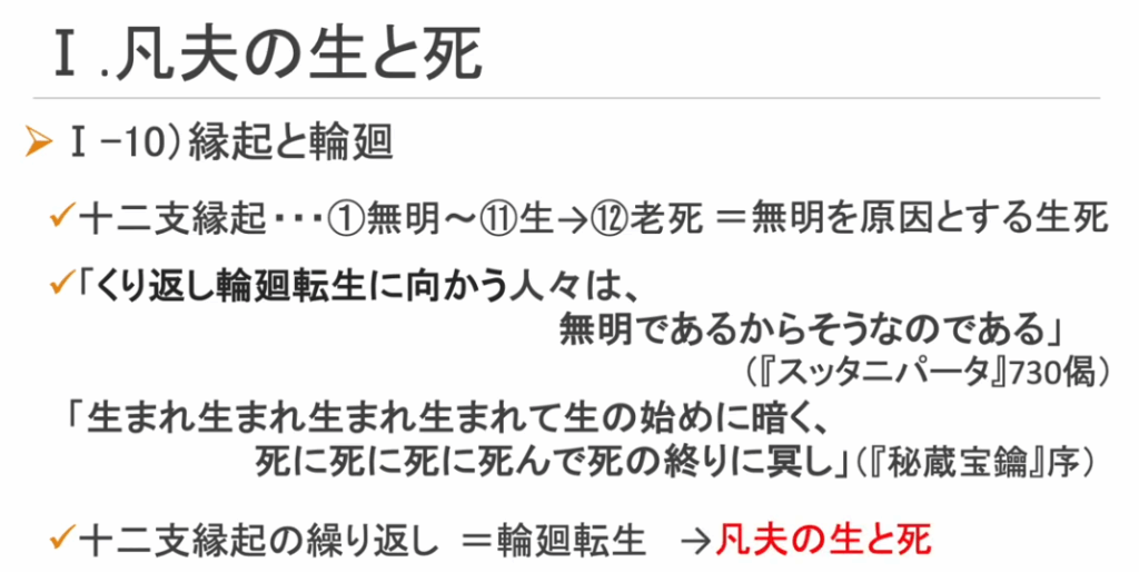 ⇒無明に束縛されたわれわれ凡夫の立場から眺めた場合に輪廻と呼ばれる。
