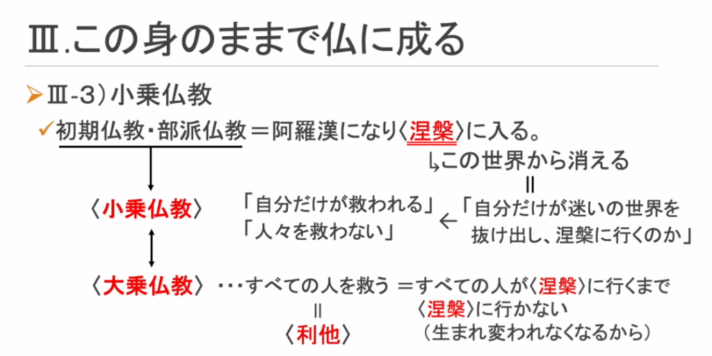 ⇒「煩悩と業と苦しみとの連続のはたらくことを決定的に妨げるところの、滅を本質としていものであり、