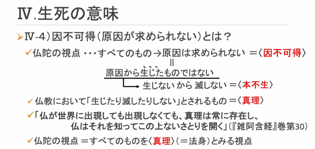 ⇒もしも生滅老死という特質のない有を考えても、それは空中の華のように実在しないものである(同書525ページ)。さらに次の第五詩には、
