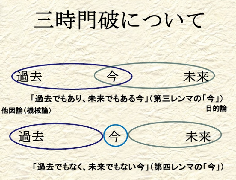 松岡 その通りです。バックミラーで後ろを見ているから、過ぎ去ったものも変化するし、いっぽうで未来もまた見方が変わるわけです。過去・現在・未来、三つ全部があるんですね。仏教では三世実有とか過未無体といいます。