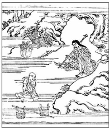 話の顛末は、こうである。ある国の国王がその国の人々を救いたいと考えた。しかしそのためには法を求めなければならない。それには国王の座を捨てたほうがいい。けれども、その法をどこで学べばいいか。もしそのようなことを教えてくれる者がいるのなら、自分はその召使いになってもいいと考えた。そのとき阿私仙人という男がやってきて、自分は法をよく知っていると言うので、国王はよろこんで仙人の身のまわりの世話をした。いくら仕えても飽きることがない。なぜなら、それが法を会得するためだったからだ。