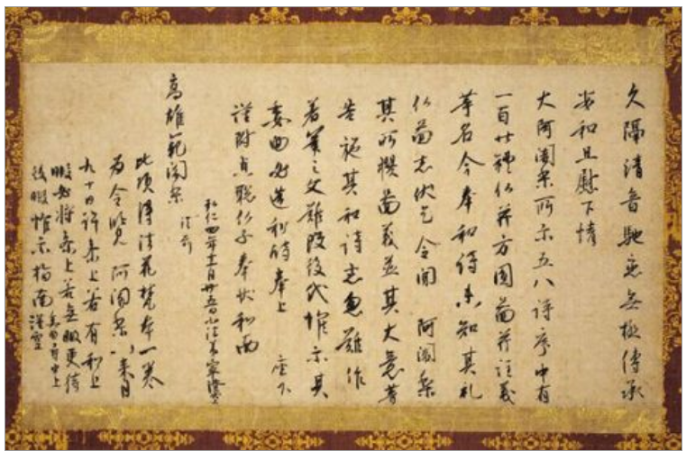 続く弘仁2年(811)7月ころ、最澄は経蔵を整理していて、いろいろ補充するべき経典があることを痛感していた。とくに密典だ。『大日経略摂念誦随行法』を入手したいと思ったのも、密典の全容を目配りしたかったからだった。空海も同じだ。《風信帖》の1通目は『摩訶止観』を借りられたことへのお礼だった。このように二人は「本」を必要としあっていたのである。