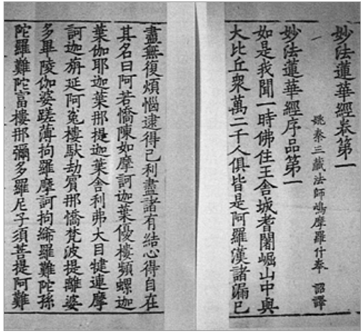 法華経は西暦紀元前後にインド西北で成立したサンスクリット語原本ののち、やがて昼は灼熱、夜は厳寒の砂漠や埃まみれのシルクロードをへて、ホータンやクチャ(亀茲)に、そして長安に届いた。ここで法華経が漢訳されると、これには中国的解釈が徹底して加えられ、東アジア社会の法華信仰の場に向かって大きく変貌していった。