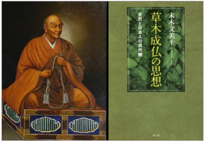 末木さんは『草木成仏の思想』(右)で、「山川草木悉皆成仏」という言葉は、天台僧・安然(左)が、中国天台の著作を大胆に解釈して生まれたものであることを丹念に検証している。